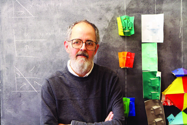 Michael Frame with fractal models in his Dunham Laboratory office.